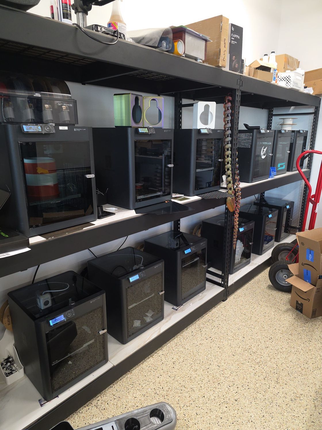 Today as I write this, we have a new location in Frisco Texas! A luxury industrial office/warehouse where we are 3D Printing with a large fleet of Bambu Printers, selling filament, and still growing!